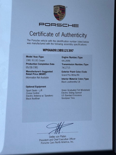 Outstanding, all original car including Grand Prix white paint and black interior with factory leather Sport Seats. Just out of 25 year ownership with just 47,000 original miles. No modifications, Still set at US ride height, Very well kept, Never any rust or damage. Immaculate throughout with outstanding paint and interior, Clean underside. Less than 5k miles on rebuilt engine, Runs and drives well. Books, tool kit, air pump and lots of original paperwork, Difficult to find SC.