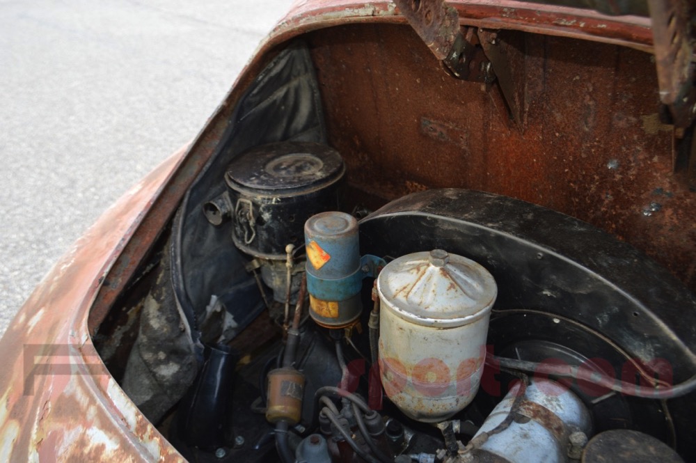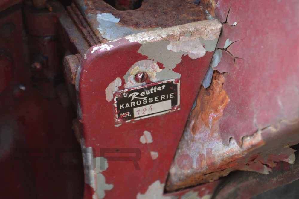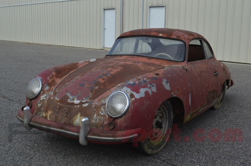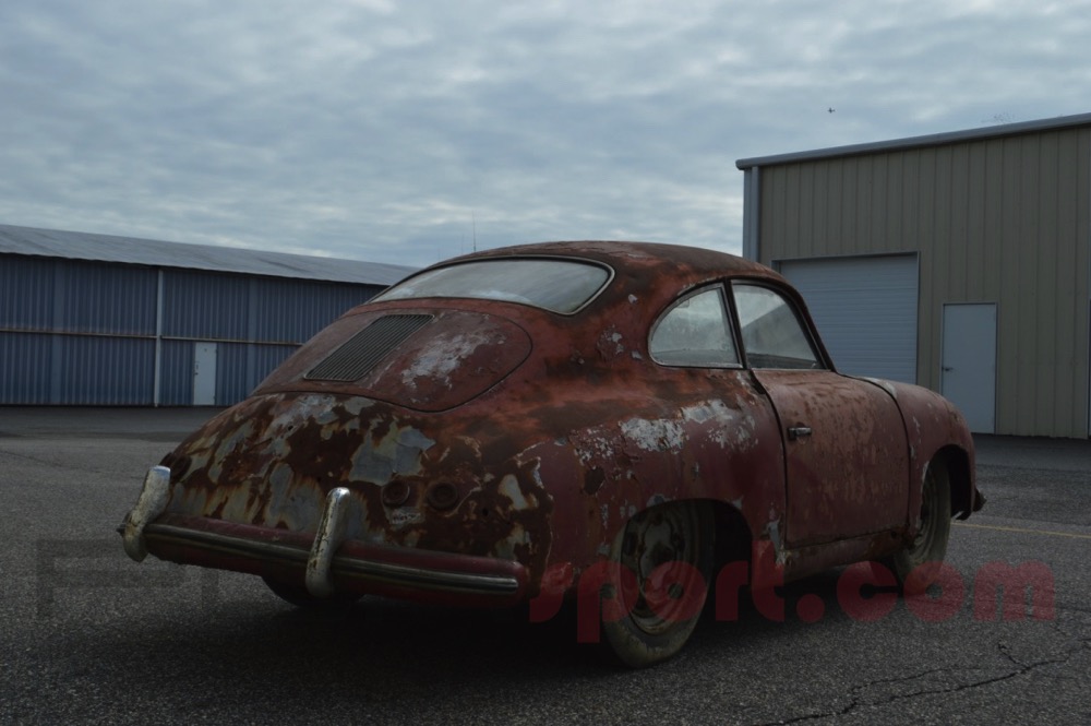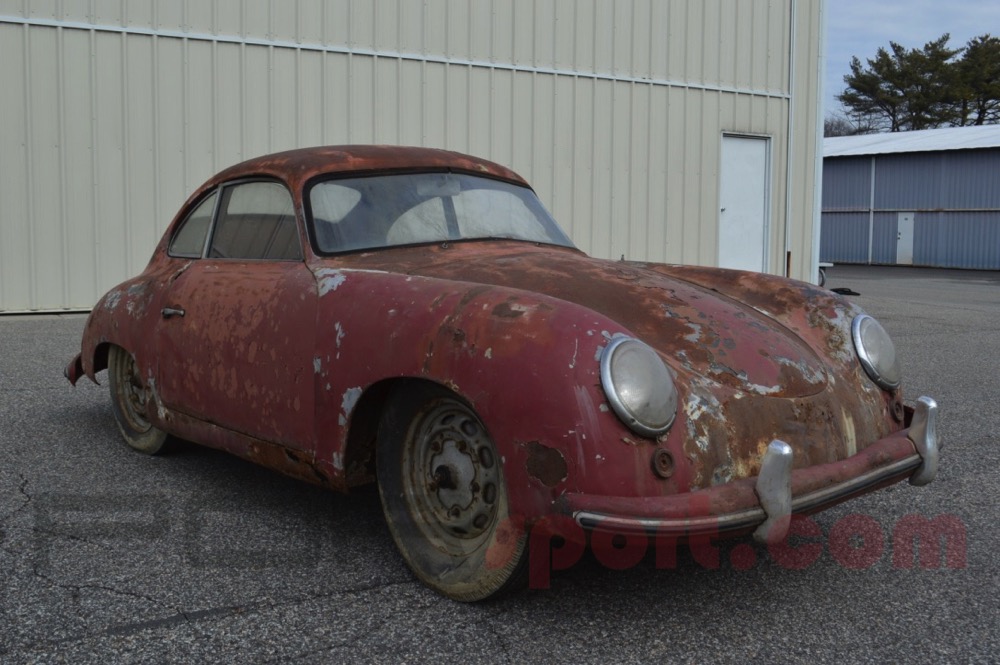 For complete restoration is this 1952 production 356 just out of the same ownership since the early 1970's. This old Dinosaur started life as a Fish Grey and Blue German delivered Coupe. The KMPH Speedometer is still with the car as are 5 16" wheels, plexi sun visors, original dash and knobs, and the Telefunken radio. Gearbox is original. The engine is from a later 356A. This 356 is very complete missing the small lighting parts, emblems and hood handle. This car has not been operable in many years. The photos show that this 356 will need structural repairs and full restoration. This neat old car needs it all however early 356 cars such as this in unrestored original condition have become difficult to find and would be stunning in the original color combination. This car represents a clean slate to restore how you wish and an opportunity to get into an early production Porsche. Clear title.