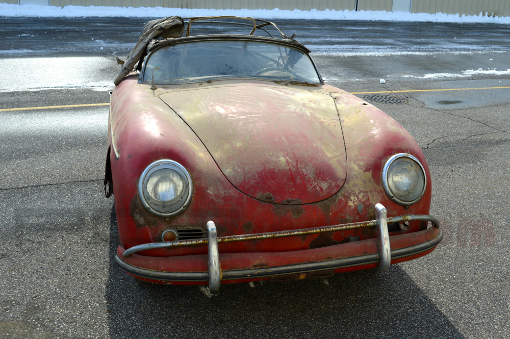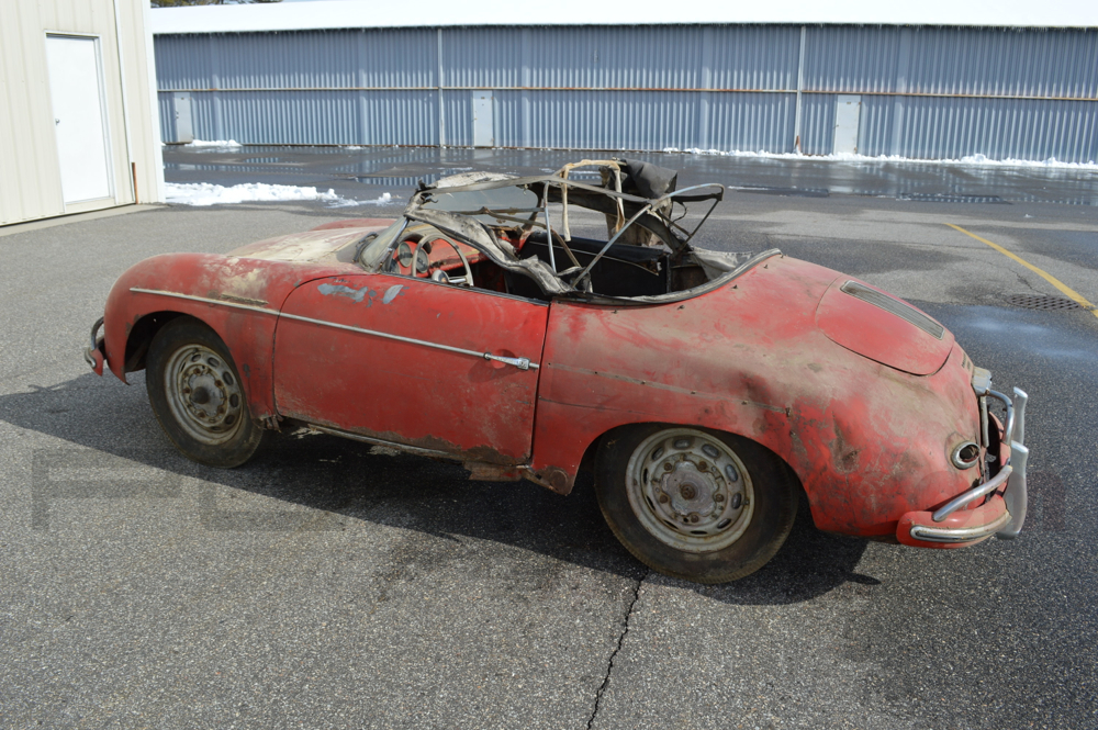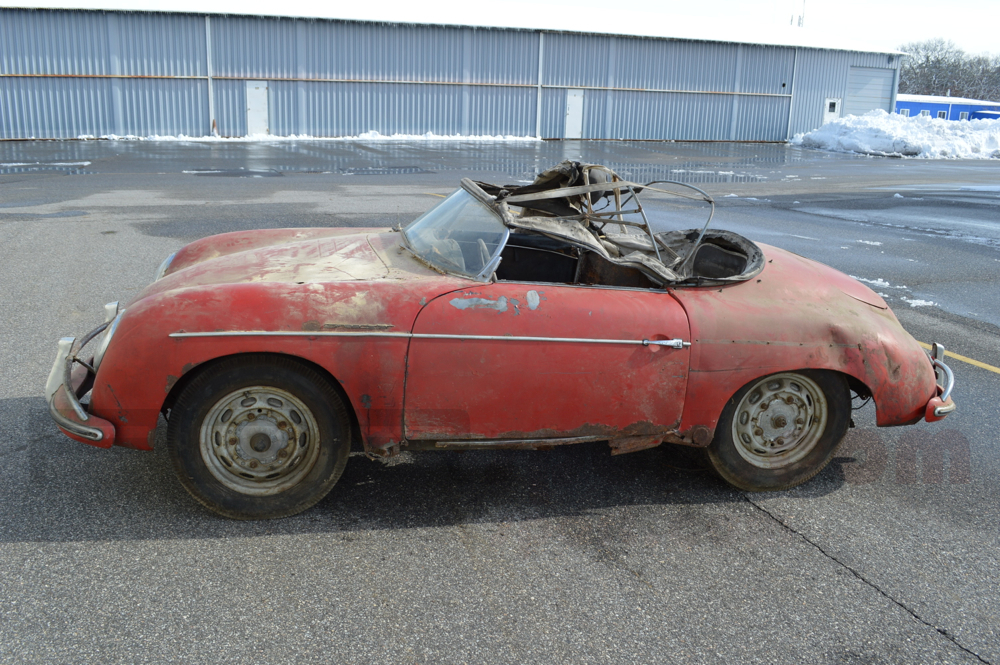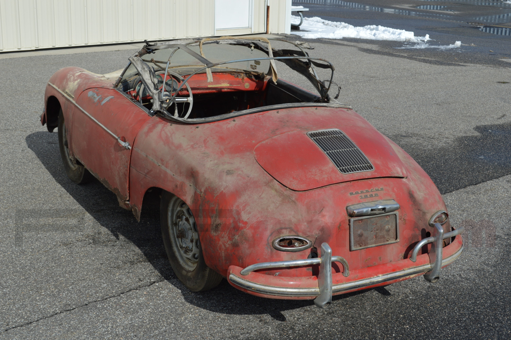 This Speedster was just pulled from a Connecticut barn where it was parked in 1985. One owner since. Old Ohio title from 1973 and from the looks of the car it was parked outside in the 70's before being stored. The Speedster is obviously untouched and very original. It is nearly complete missing the seats and a few small parts and is fully matching numbers. It retains all of its major original components and panels. The Speedster has structural rust will require a full restoration and underside reconstruction or would be a great static display Speedster in a collection. The wheels are 16s and the rear bumper is from a later car.