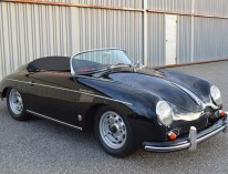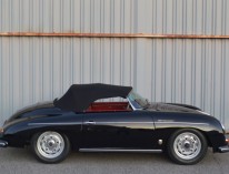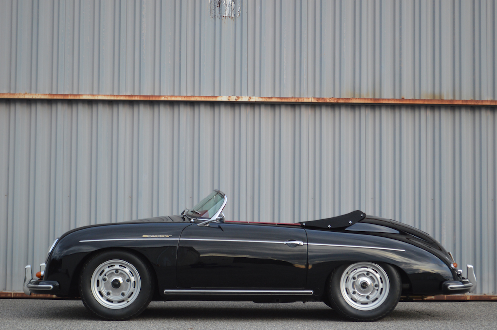1 of the 7 Factory Black Super Speedsters, Original Black Speedsters are rare with only 141 built out of total Speedster production, a 58 Super being the most rare and desirable. Sister car to the famed Steve McQueen Speedster. These Speedsters are highly coveted and rarely come to market. Excellent yellow plate California car in beautiful condition, Older restoration work shows just right, proper red interior, great body and trim, KD factory replacement engine and a fresh hot rod based 912 with Skirmants built gearbox, Techno wheels with Michelin XWX tires, Runs and drives beautifully. A great driver ++ Speedster that can be driven and enjoyed.