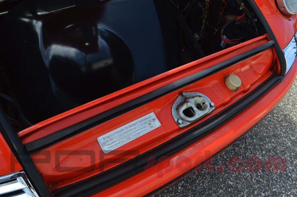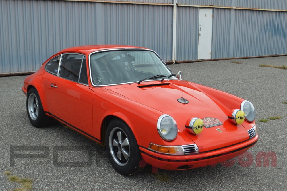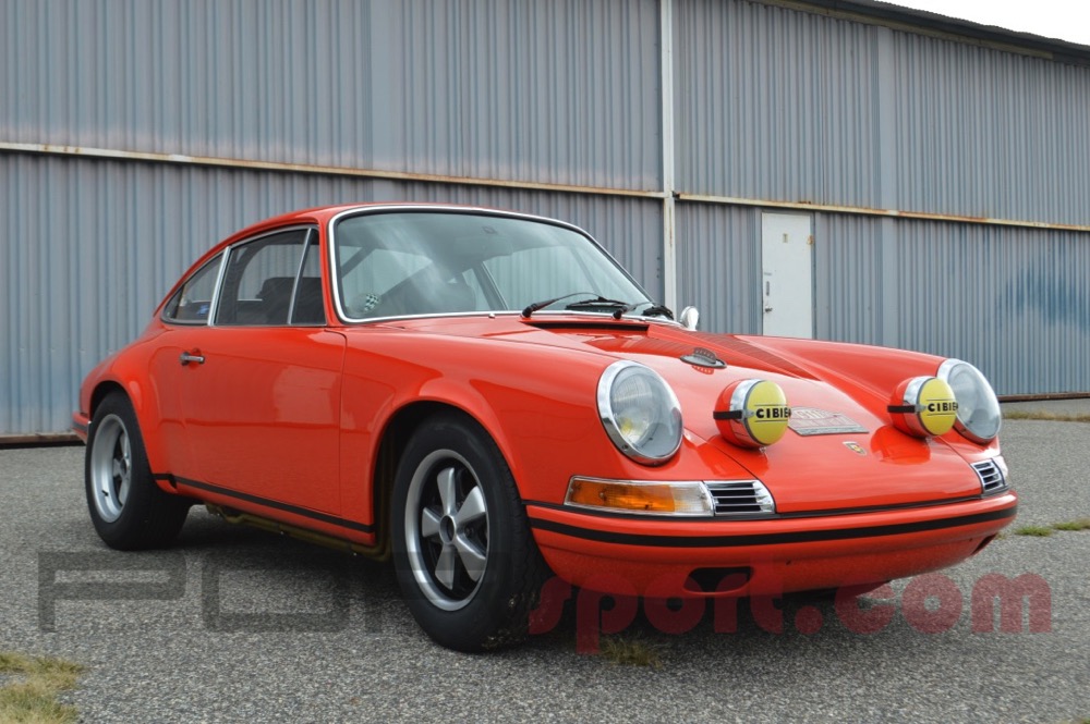 Nearly 20 years ago a good friend bought this car. It was an original, rust-free, bone stock 911T in lovely condition with one repaint in the original color of Tangerine. He then set out to convert the car to a version of the ST. After the work was completed the car was put in storage unused until earlier this year. I did a basic clean-up and improved some of the details. The engine is a 2.5 twin plug with 46 Webers, headers, and rally muffler built by one of South Florida's finest, 915 gear box with LSD, Bilstein RSR coil over suspension with adjustable sway bars and spring plates, Real 100 liter steel tank with center fill, Outstanding ST spec interior with roll bar, Momo Prototipo with early button and original solid hub, full perlon and Repa belts over cord buckets, Fresh Weidman deep 6 Fuchs wheels in the front and 8" Minilites in the rear with new Avon tires. Cibie hood lights and Cibie Biode headlights. The body features all original panels with 8' flares properly done in the rear. The panel fit and gaps are exceptional. The paintwork is older however it is virtually unblemished and vibrant. Paint in the door jambs and under the lids is original. The trim and glass are exceptional. It starts and operates easily. It is fast, stiff, nasty, and loud as a proper Sport Eleven should be. This is an outstanding event car that we would all like to build that is ready to be enjoyed today. Ideal for the road and track. Original owner's manual and maintenance book included. All of the original parts including the OG engine are long gone and not included.